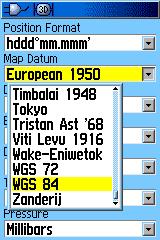 | Hvis man på en Garmin 60C går inn i setup-menyen/units finner man en meny som heter "Map Datum". Listen er lang og inneholder en rekke uforståelige betegnelser, men vi kjenner igjen "WGS 84" og har sikkert også en ide om at "Timbalai 1948" høres feil ut. Men hva med "Europeisk datum 1950"? |