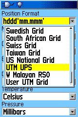 I omtalen av datum har jeg bare brukt geografiske koordinater (lengde + breddegrader). Lengde og breddegrader refererer seg til at jorda er rund, men innenfor mindre områder er det lettere å betrakte område som ganske flatt. Derfor bruker man vanligvis rettvinklete koordinater med meterangivelse når kartområdet ikke er for stort. På alle GPSer vil man finne en meny for å velge mellom ulike posisjonformat. Det er bare tre valg som er interessante for oss, hdd°mm.mmm', UTM UPS og User UTM Grid. I Norge brukes hovedsaklig UTM som er et rettvinklet koordinatsystem. På eldre økonomisk kartverk finnes også NGO-48 tegnet ut i rettvinklede koordinater men dette er i prinsippet konstruert på samme måte som UTM. |