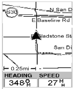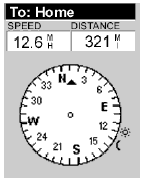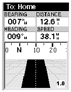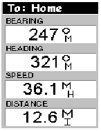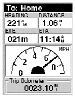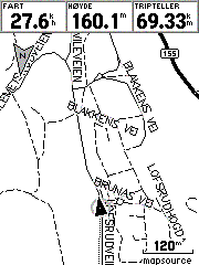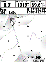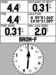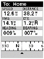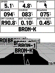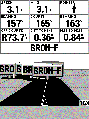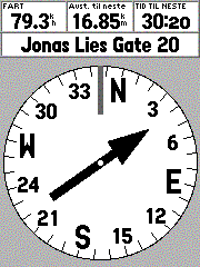 GpsMap 76S har egne navigasjonsside for aktiv rute.